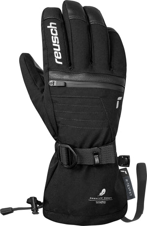 REUSCH SNOW PRO DOWN R-TEX® XT Mitten Item No.: 6401405 This puffy ski mitten combines our warmest natural Down insulation with a sportive short-cuff and guaranteed waterproofness thanks to a high-quality R-Tex® XT insert. Additionally, this glove features reinforced fingertips, soft palm padding and cowhide shell and palm material for longevit...
